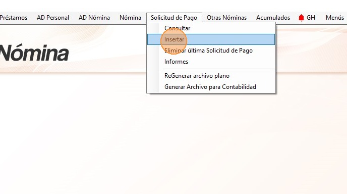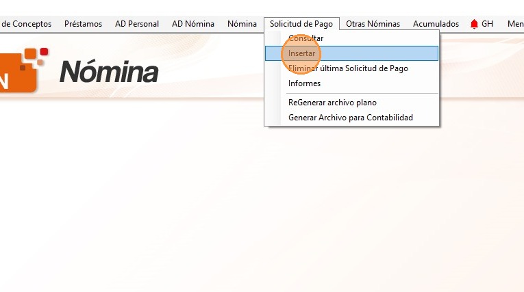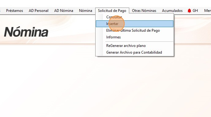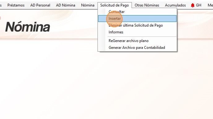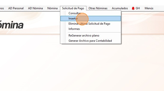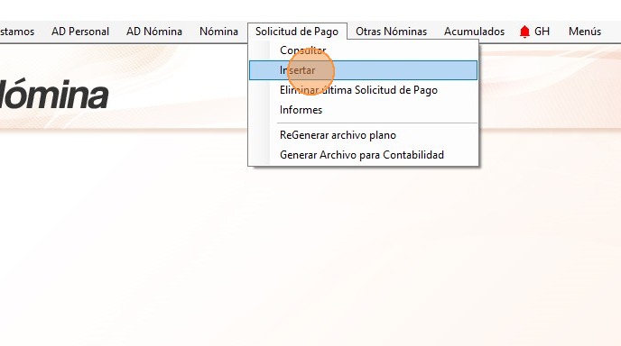 19. Haz clic en "Solicitud de Pago - Insertar".