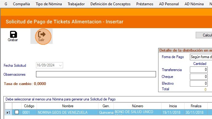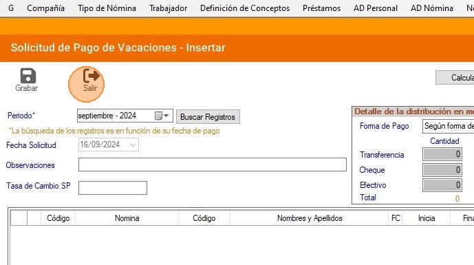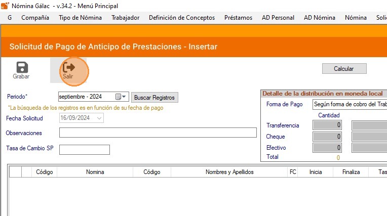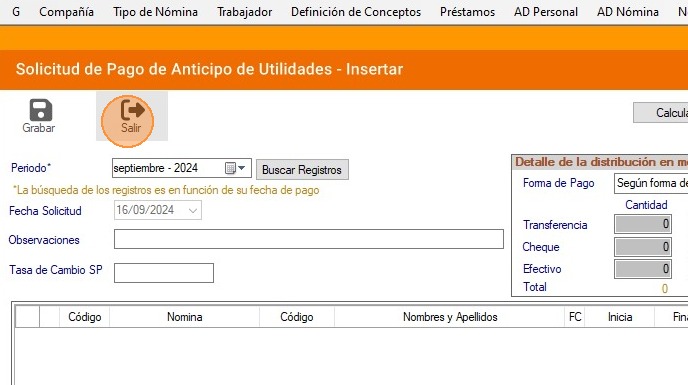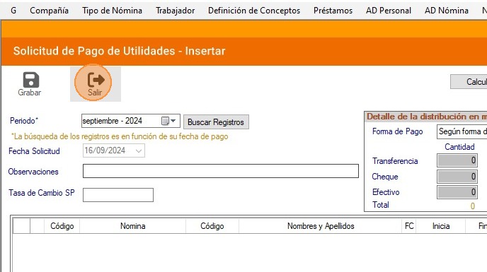 22. Cierra la ventana "Solicitud de pago de utilidades".