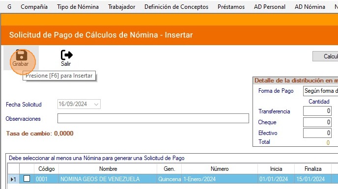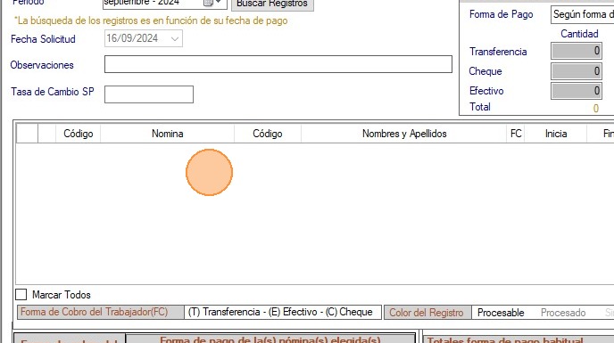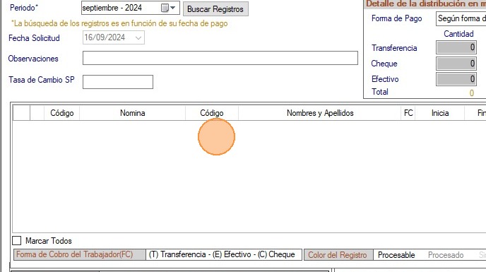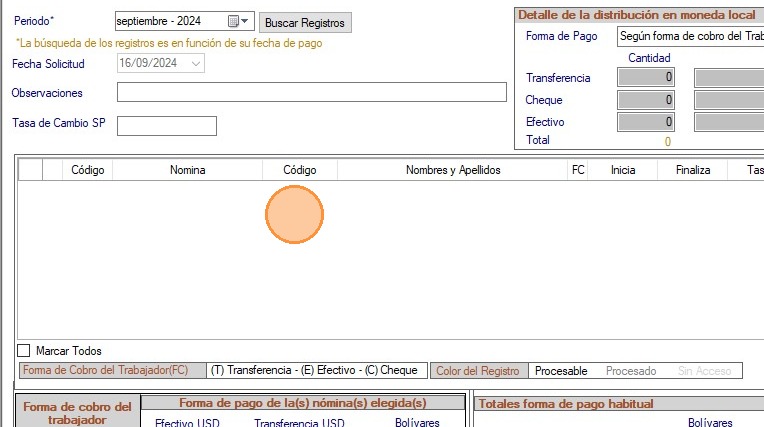 Tip: Importante: Todos los trabajadores de la nómina deben tener ambas formas de cobro con información necesaria para realizar el pago cuando se haga la distribución.