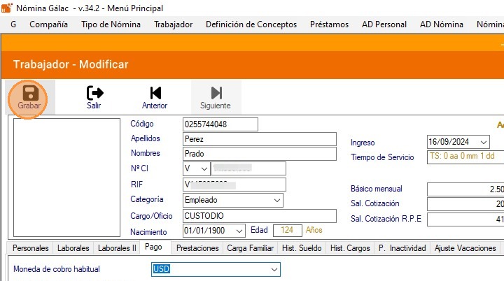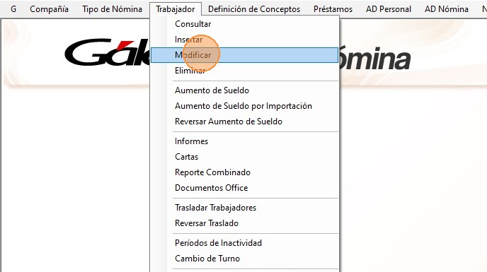 9. Selecciona el trabajador y haz clic en "Modificar".