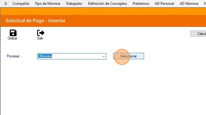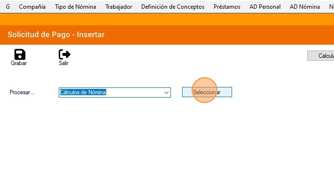 14. En la lista "Procesar", selecciona "Cálculo de Nómina" y presiona en "Seleccionar".