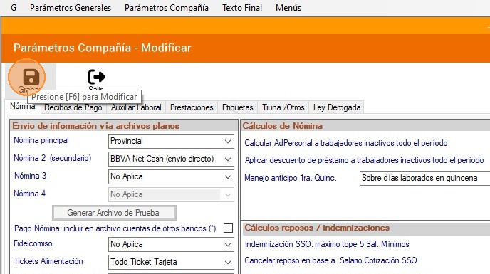2. Haz clic en "Parámetros Compañía - Modificar".