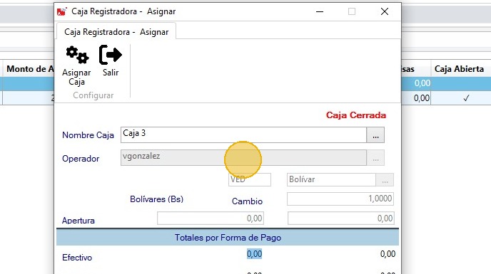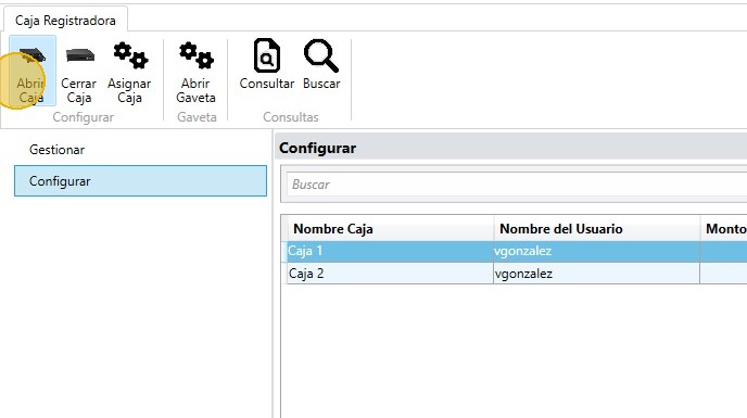 1. Para abrir y asignar una caja registradora haz clic en "Caja Registradora - Gestionar Caja Registradora"