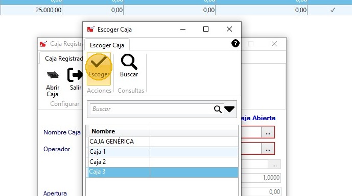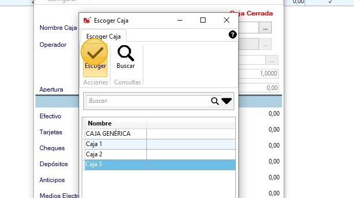 4. En la ventana que aparece selecciona por ejemplo "Caja 3" y haz clic en "Escoger"