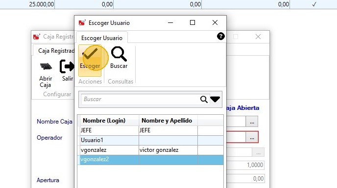 5. Selecciona el usuario al cual se le asignará la caja registradora.