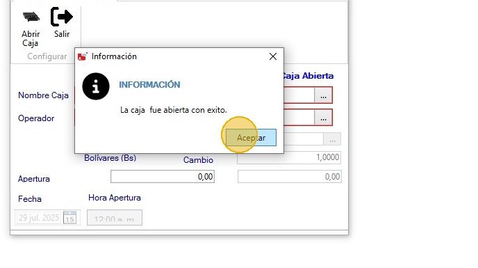 16. Se mostrará un mensaje que muestra: "La caja fue abierta con éxito"