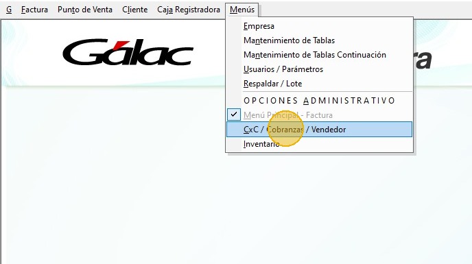1. Para importar clientes, desde el menú principal, haz clic en "Menús - CxC / Cobranza / Vendedor".