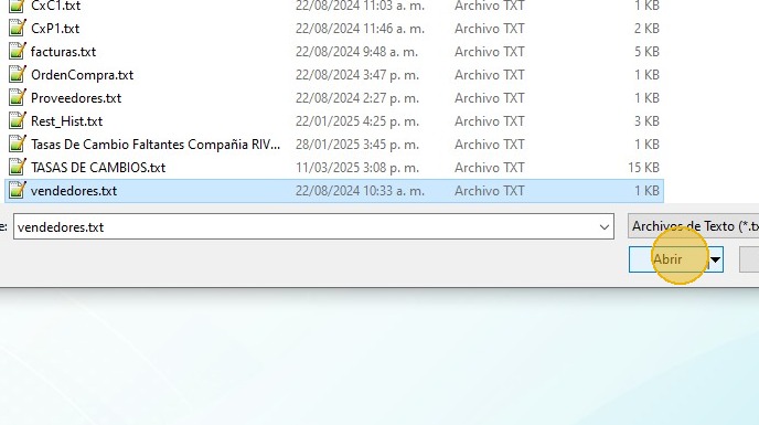 5. En la ruta que ubicaste, selecciona el archivo de importación con formato (.txt).