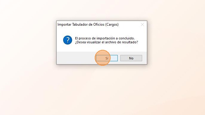 10. Al finalizar el proceso de importación se mostrará el siguiente mensaje, haz clic en "Sí" para continuar.
