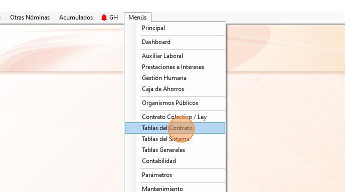 5. Haz clic en "Menús - Tablas del Contrato".