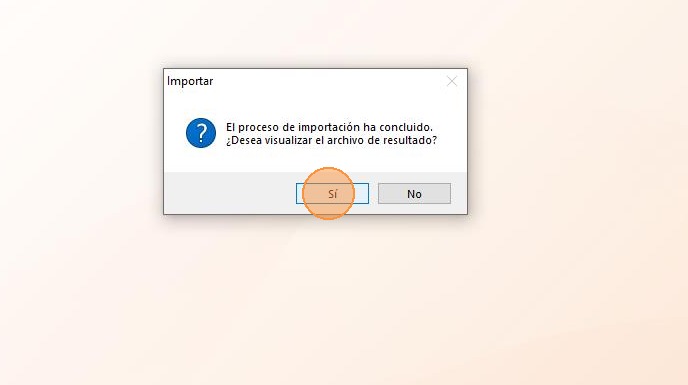 12. Al finalizar el proceso de importación se mostrará el siguiente mensaje, haz clic en "Sí" para continuar.
