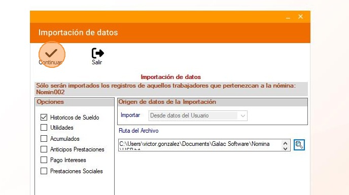 Tip: Con los pasos descritos anteriormente podrás importar el histórico de sueldos al Nómina Gálac.