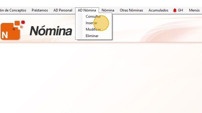 18. Desde el "Menú Principal" haz clic en "ADNómina - Insertar"