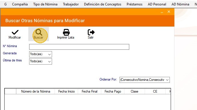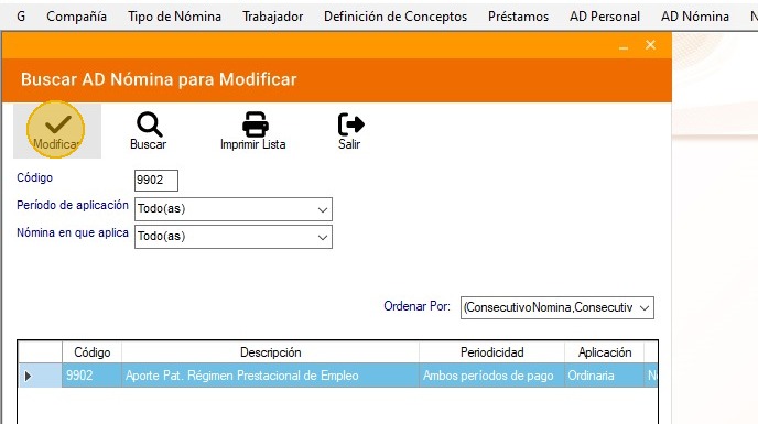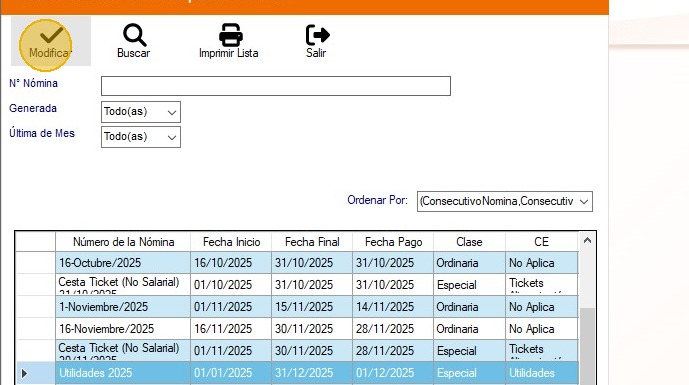 42. Ubica la nómina, selecciónala y presiona en "Modificar".