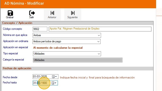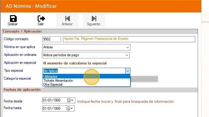 En "Nómina en qué aplica": Selecciona "Ambas".