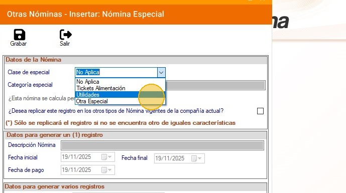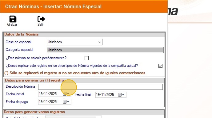 36. Ingresa la descripción de la nómina especial.