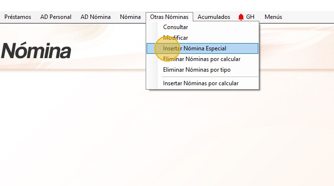 33. Para insertar la nómina, haz clic en "Otras Nóminas - Insertar Nómina Especial".