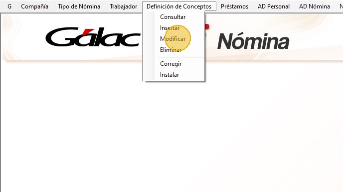 9. Ahora, desde el "Menú Principal", haz clic en "Definición de Concepto - Modificar".
