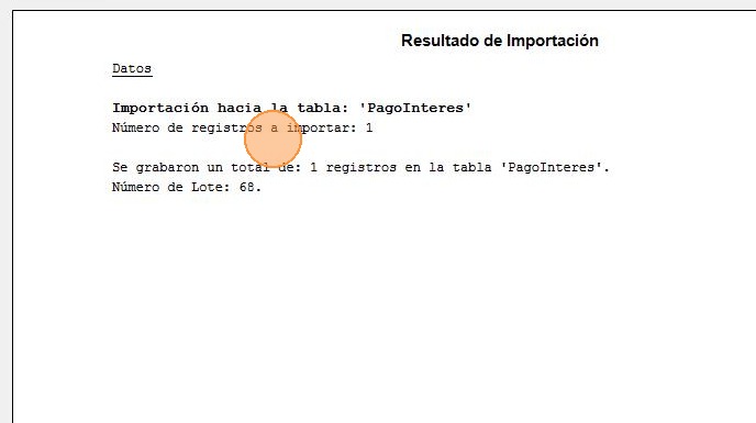 Tip: Con los pasos descritos anteriormente podrás importar pago de intereses desde archivo de texto.
