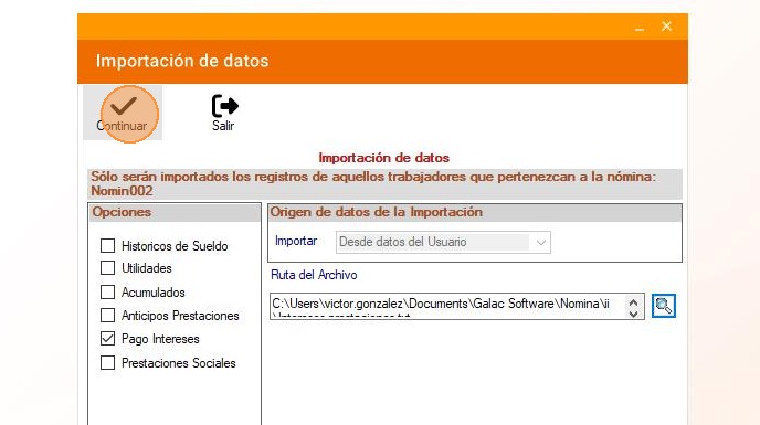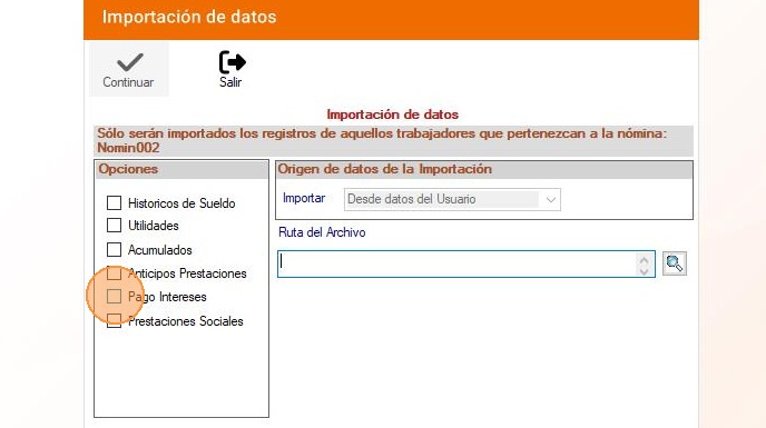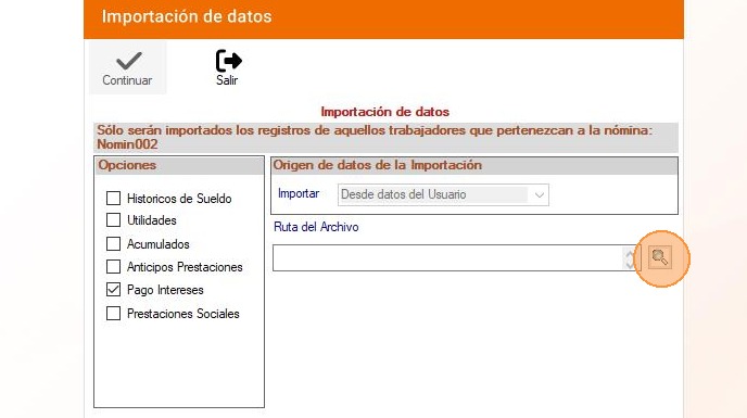 Nómina: Importar pago de intereses desde archivo de texto