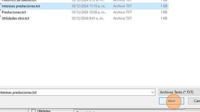 8. Selecciona el archivo "Intereses prestaciones.txt" y haz clic en "Abrir".