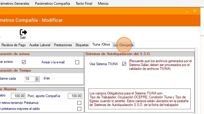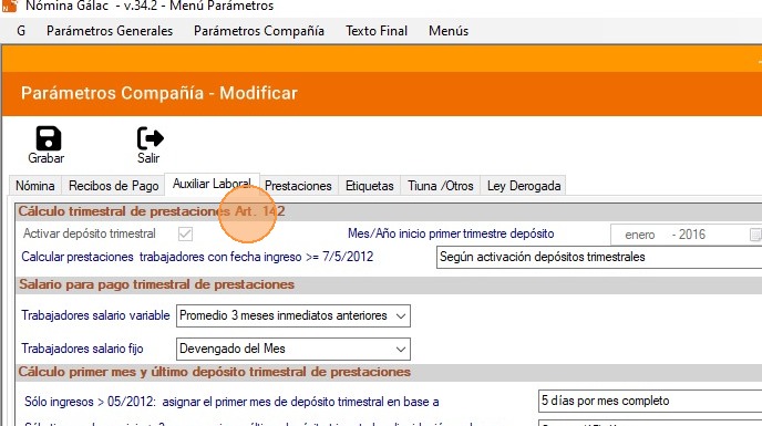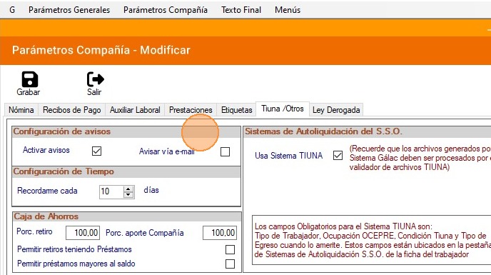 Tip: Con los pasos descritos anteriormente podrás activar o desactivar los parámetros de compañía en el Nómina Gálac.