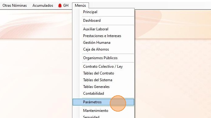 1. Haz clic en "Menús - Parámetros".