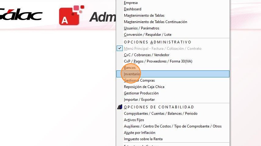 17. Paso 17. Haz clic en "Menús - Inventario".