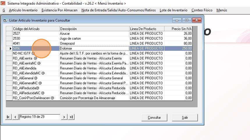 18. Paso 18. Haz clic en Artículo de "Inventario - Consultar".