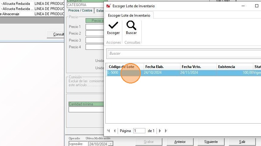 22. Aquí se puede ver el lote al cual pertenece el producto de tipo "lote y fecha de vencimiento".