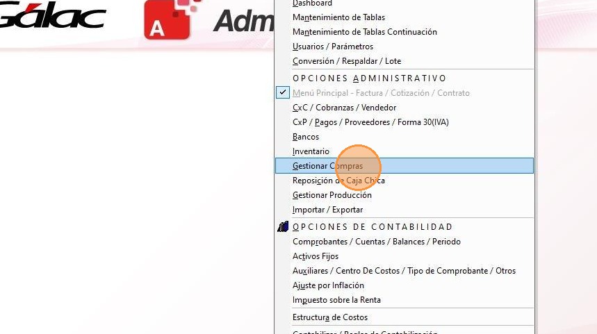 1. Paso 1. Haz clic en "Menús - Gestionar Compras".