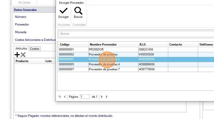 5. Paso 5. Mediante la combinación de teclas (Asterisco (*) + Enter) selecciona el proveedor.