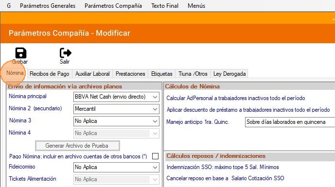 3. Haz clic en la pestaña "Nómina".