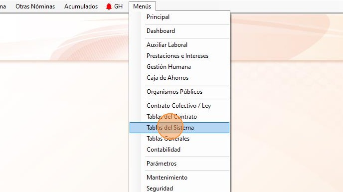 15. Haz clic en "Menús - Tablas del Sistema".