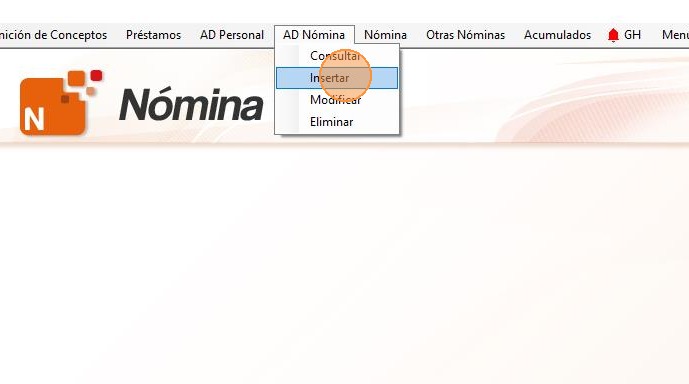 8. Ahora haz clic en "AD Nómina - Insertar".