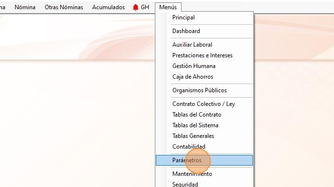 1. Haz clic en "Menús - Parámetros".