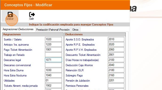 16. Haz clic en "Conceptos Fijos - Modificar".